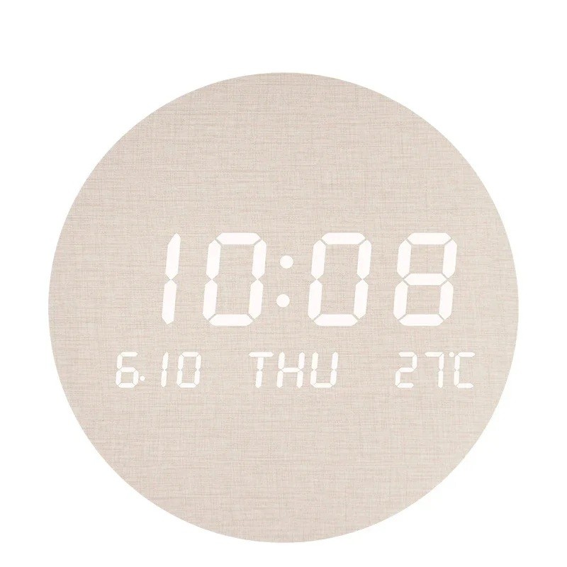 LED digital wall clock with temperature, date, and time display measuring 22 x 20.5 x 3.5 cm. Ideal for modern homes and offices. Full description