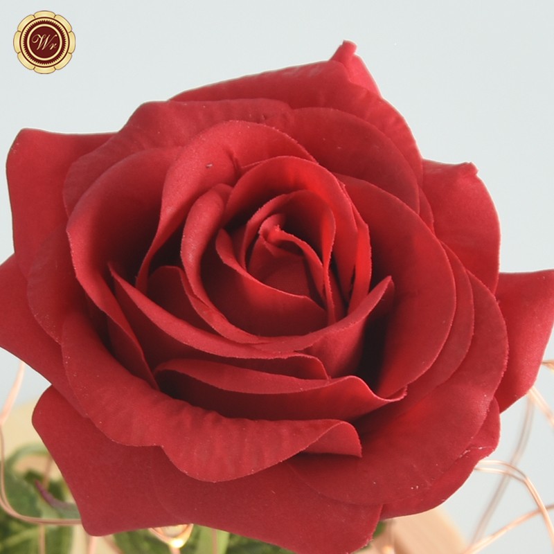 All thanks to the LED illuminated red rose in a glass jar on a wooden base.