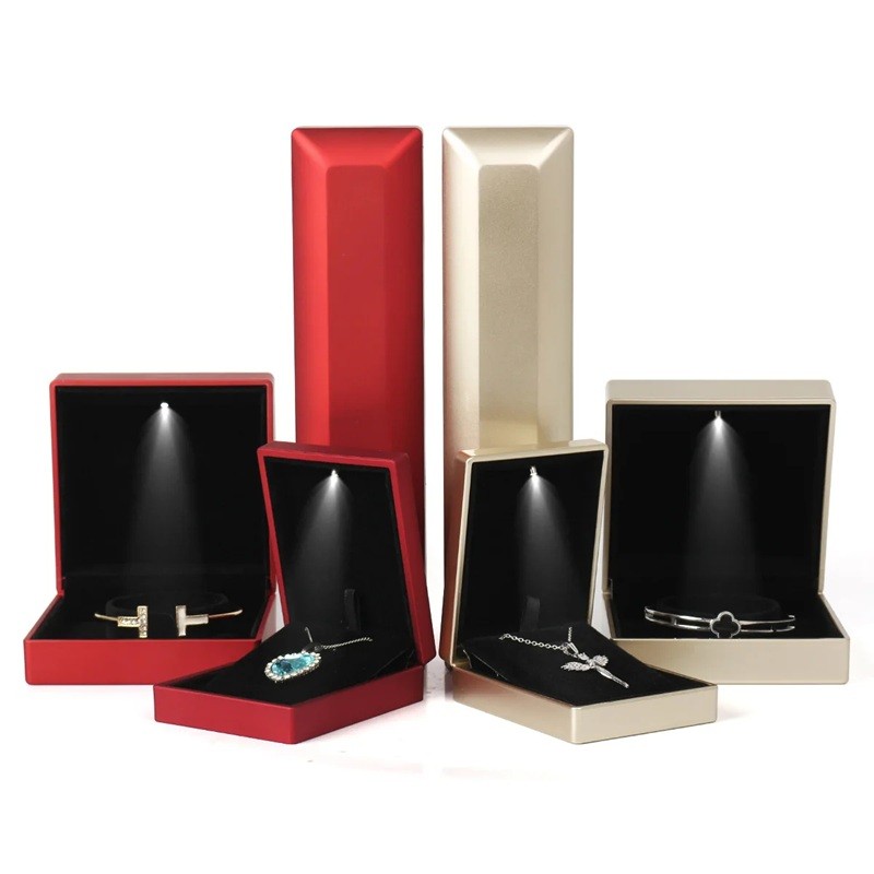 The box is available in several elegant colour options that accentuate the style of each piece of jewellery. The interior is lined with velvet padding that protects the ring from damage. This model is popular for engagement gifts, wedding occasions, and luxury jewellery presentations in boutiques. LED lighting creates an impression of luxury, making even a small gift unforgettable.