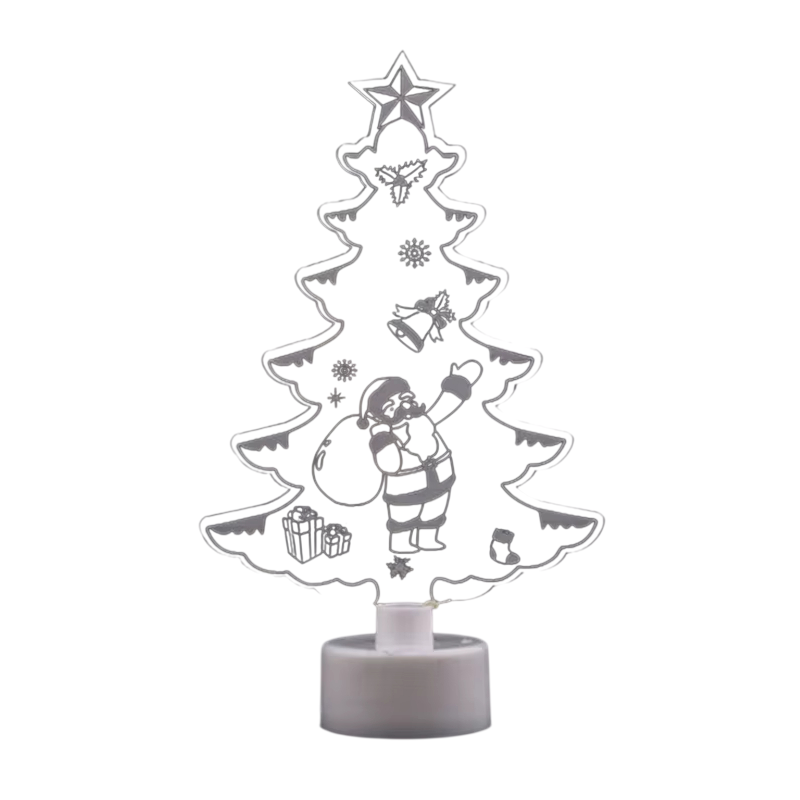 This LED mini night light in the shape of a Christmas tree is the perfect addition to create a warm and festive atmosphere. With compact dimensions of 15 x 8.8 cm, it can be easily placed on a table, windowsill, shelf, or among other Christmas decorations. The colourful flashing LED light creates a cheerful lighting effect that immediately attracts attention. It is powered by a button battery, so the light does not require any cables and can be used anywhere indoors. It is ideal for Christmas decorations, parties, festive evenings, and themed celebrations.