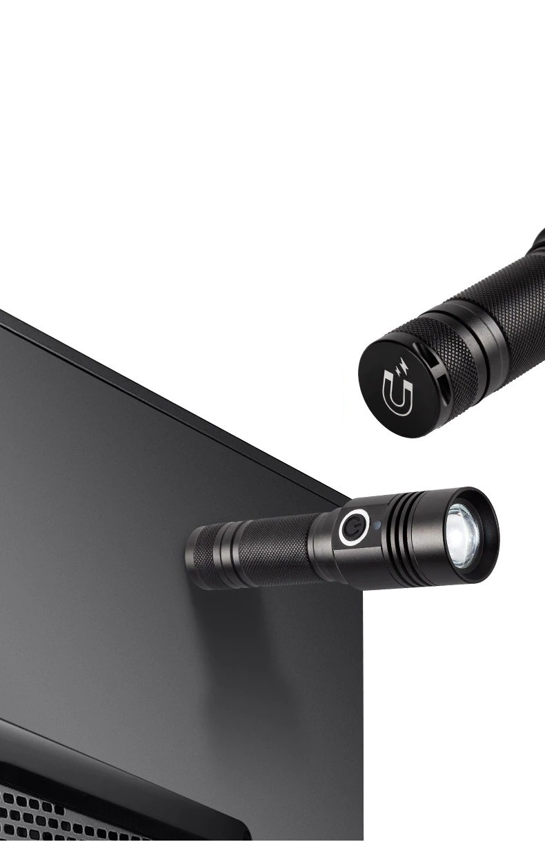 This LED rechargeable torch is designed for outdoor activities as well as for home use. It is equipped with a strong magnet for attaching the torch to a surface. It features a built-in rechargeable battery and battery status indicator. The torch has 3 lighting modes. It is made from aluminium alloy.