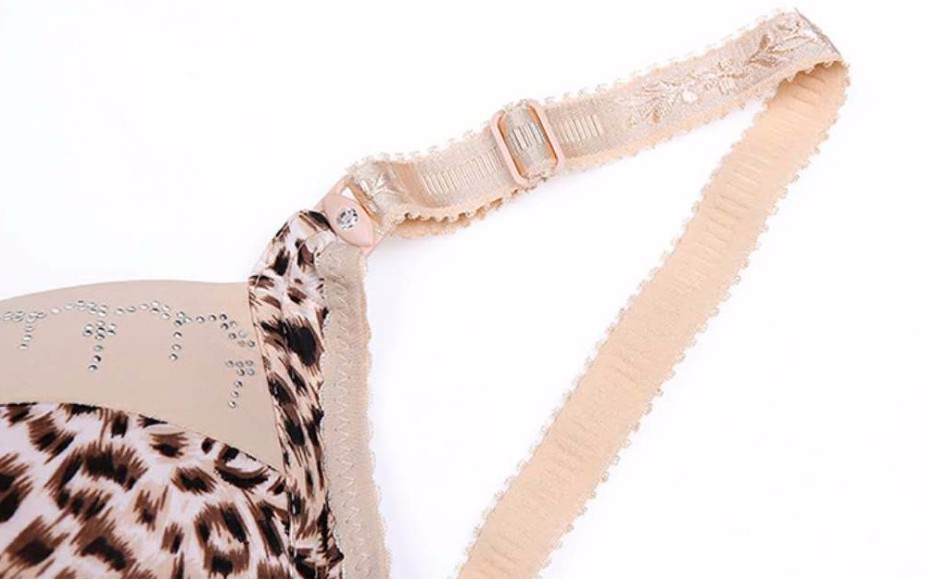 A bra featuring a popular leopard print design with rhinestones.