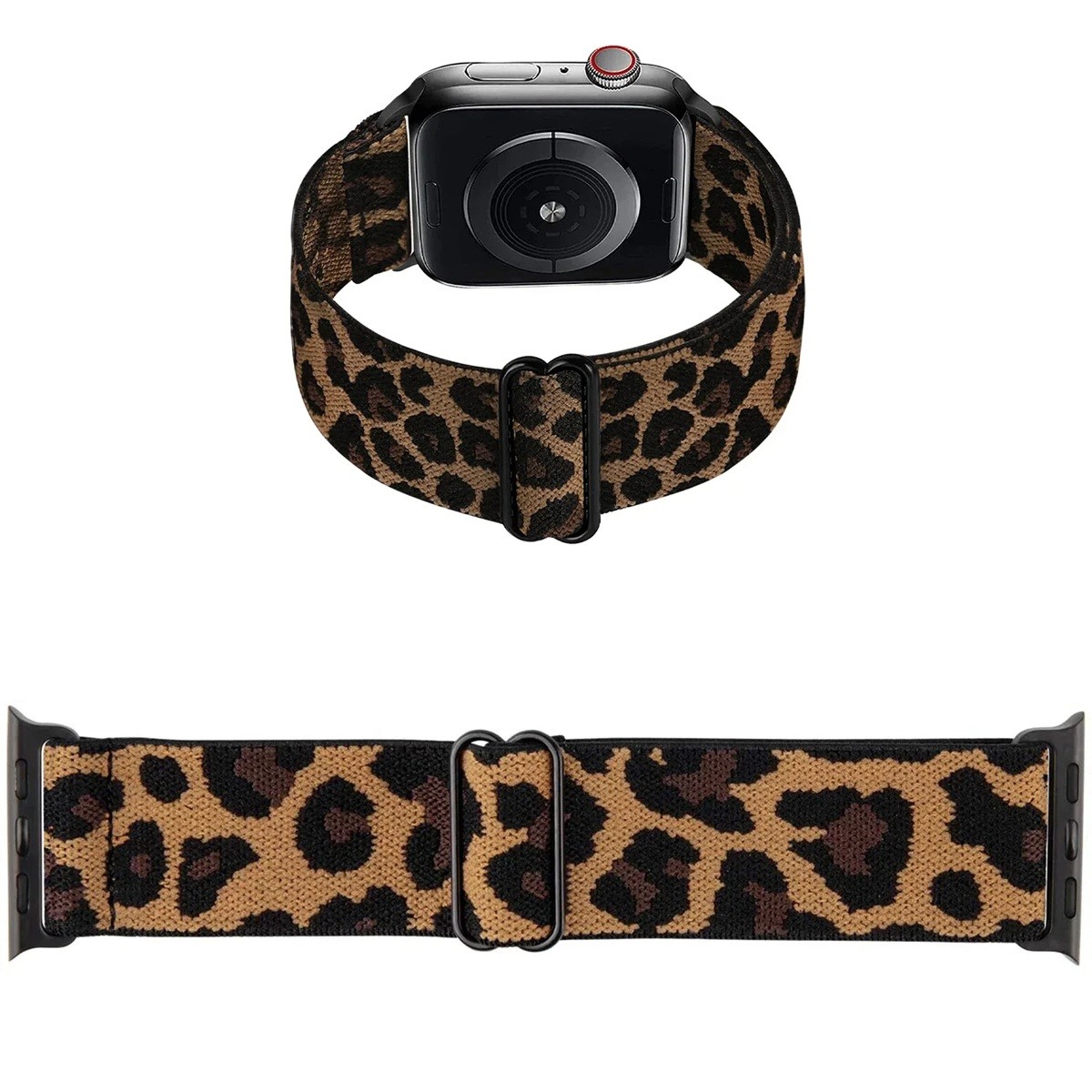 Home page Home page Mobile Phones, Smartwatches & Tablets Smartwatches Smartwatch Straps Leopard Print Elastic Nylon Strap 42 mm for Apple Watch S10 Adjustable Stretch Band with Steel Sliding Buckle