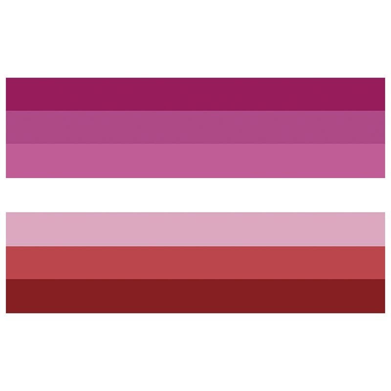 Lesbian pride flag with dimensions of 90 x 150 cm. Long-lasting and colourfast. Ideal for parades or hanging from a window.