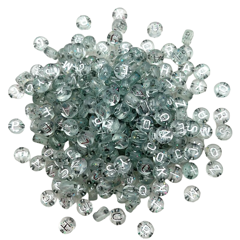 Beads with letters. Dimensions: 4 x 7 mm. Various colours. Full description