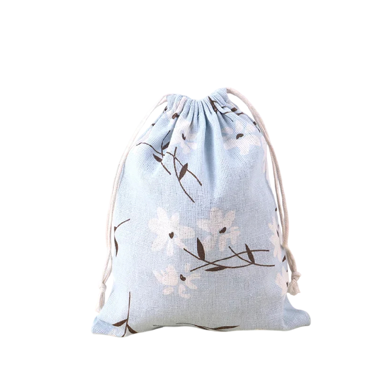 Home page Home page Home & Household Supplies Storage Storage Boxes Linen Drawstring Bag 25x31 cm Light Blue with Floral Print for Storing Small Items and Gift Wrapping