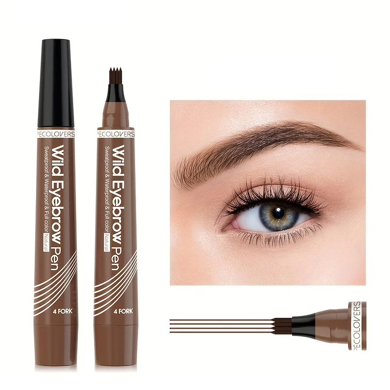 Waterproof liquid eyebrow pencil with a 4-tip brush for precise, long-lasting, and natural eyebrow definition. Full description