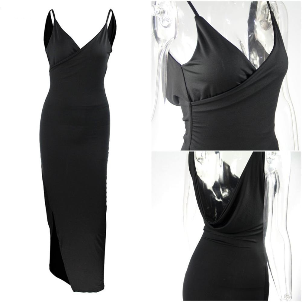 High slit and boldly exposed back.