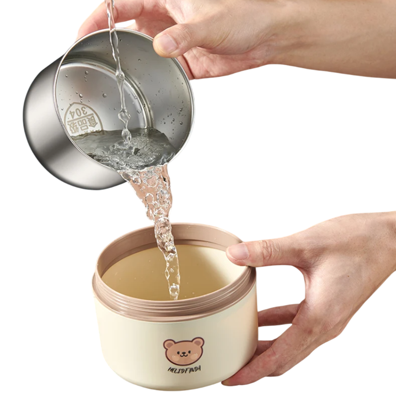 Home page Home page Home & Household Supplies Kitchen Food Storage Food Containers & Boxes Lunch Box Set 400 ml and 600 ml Stainless Steel Insulated Container Leakproof Microwave Child's Box with Bear and Cutlery