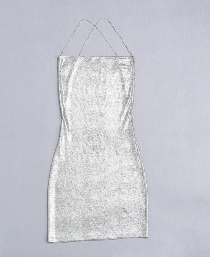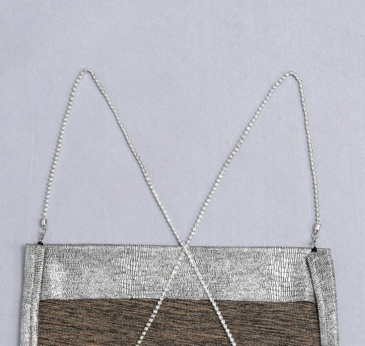 Chain straps with a crossover at the back. Seductively exposed back.