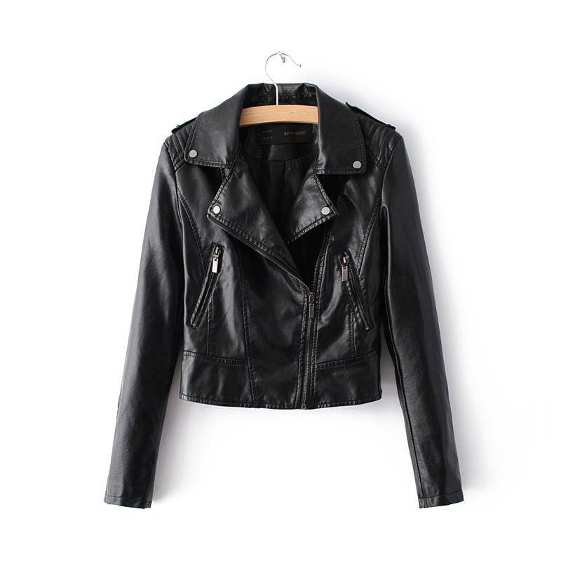 Luxury women's biker style jacket made from faux leather.