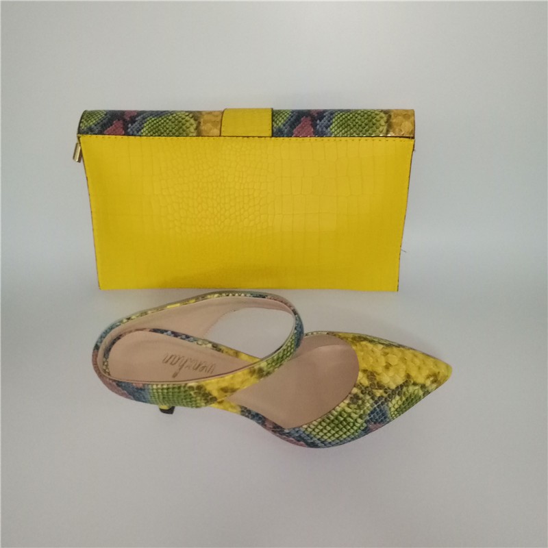 These snake-patterned heels in yellow are well-made and stylish.