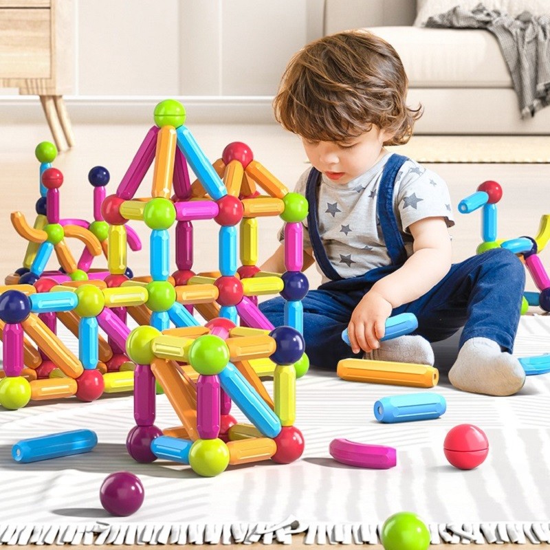 Connecting pieces using magnets. Supports creativity. Bright colours. Full description