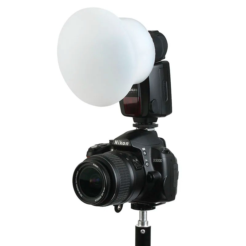 The diffuser effectively disperses light and helps eliminate overexposure, harsh transitions, and unwanted reflections. It is suitable for both portrait photography and product shooting, reportage, or video recording. Due to its universal size and compatibility with brands such as Godox, Canon, Nikon, and Yongnuo, it can be used with a wide range of external flashes.