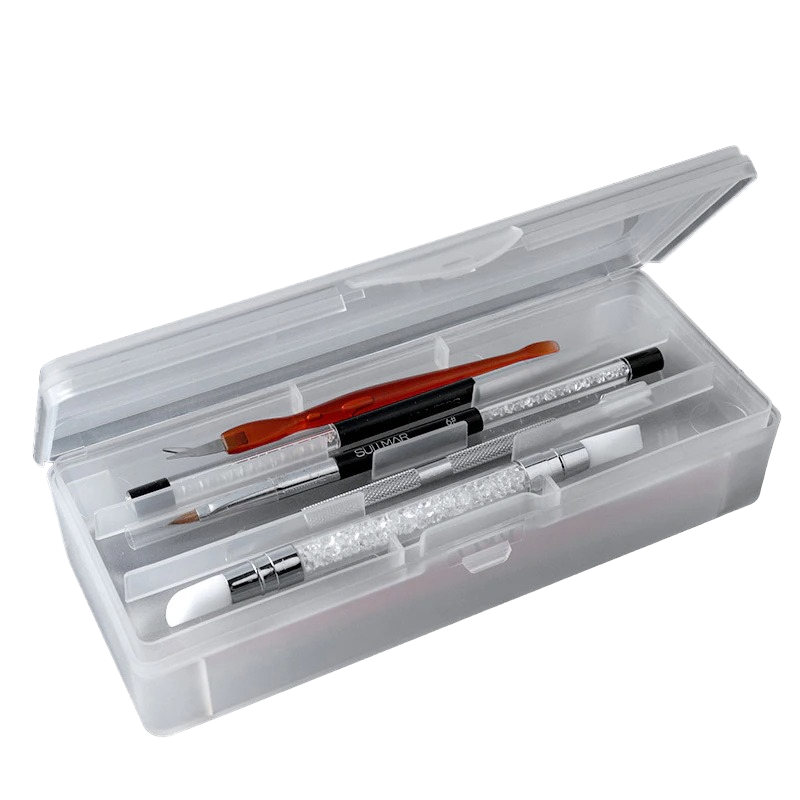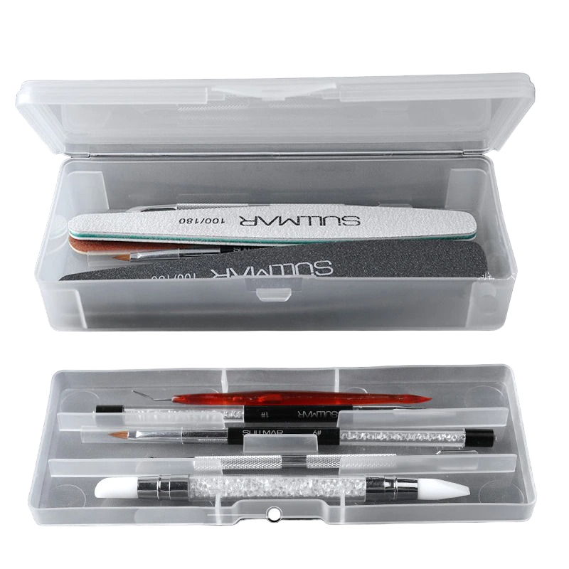 With this stylish and practical organiser, you will always have your manicure supplies at hand. It is made from transparent plastic and, thanks to its elegant design, will look great on your dressing table or shelf in the bathroom. Its dimensions are approximately 19.2 x 8 x 4 cm, making it the perfect size for storing all your favourite nail products, from polishes and removers to cuticle tools and cotton pads.