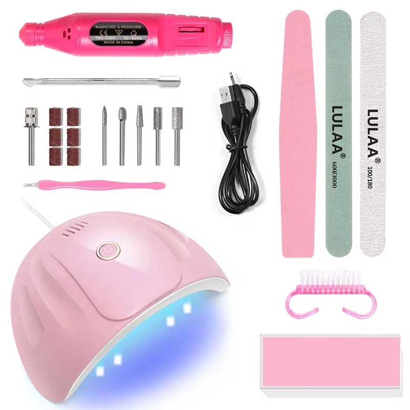 Contents: 1 set of nail tools (including lamp, drill, files, and accessories)