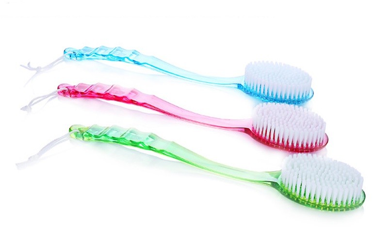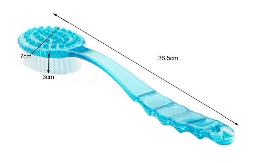 Massage brush with a long handle for easy washing of hard-to-reach areas of the body.