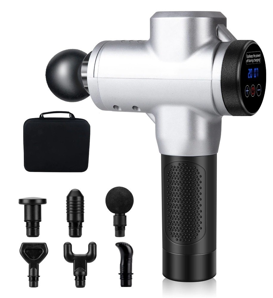 The massage vibration gun is a device that stimulates blood circulation and helps you to relieve tight muscles. The gun is controlled via an LCD touchscreen. The vibrations can be adjusted to 20 different speeds. The package also includes 6 interchangeable attachments for various massages. The massage gun is a suitable tool for both recreational and professional athletes and is almost an essential tool for physiotherapists.