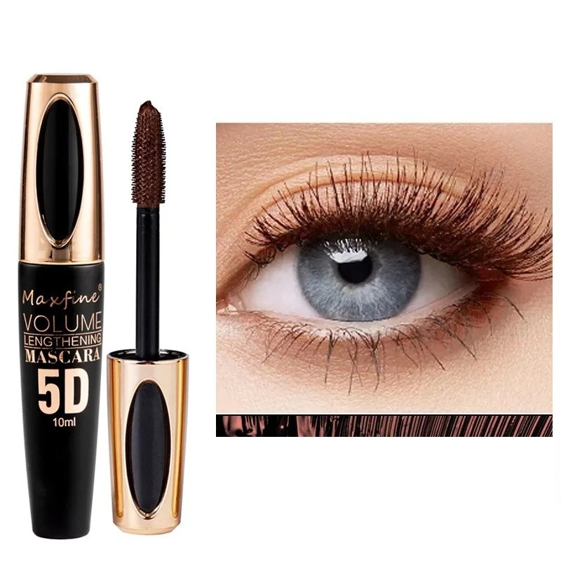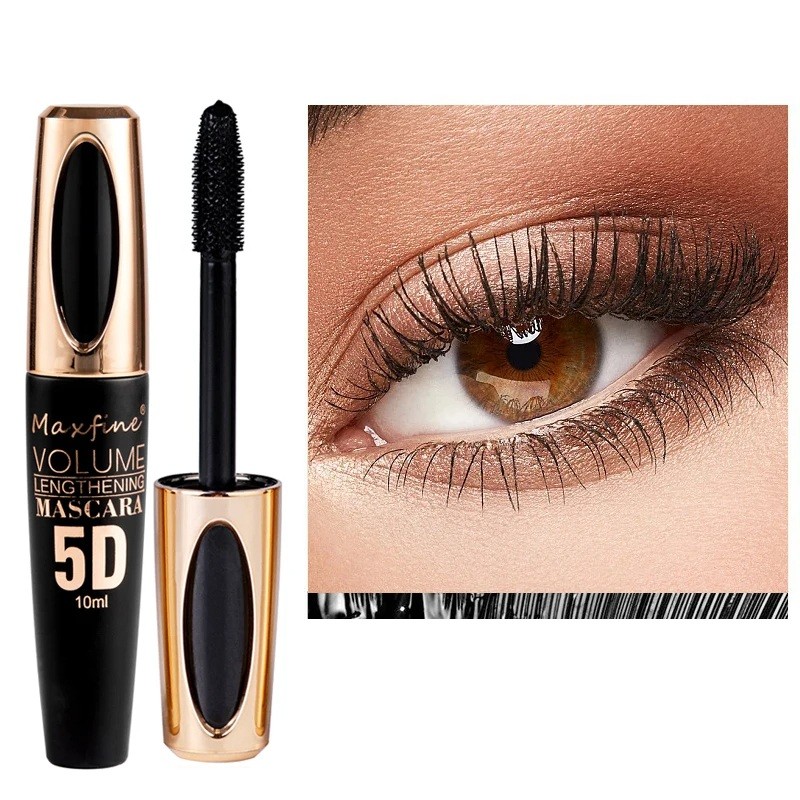 Maxfine 5D Mascara 10 ml Black Lengthening Mascara with Volume Effect Shaped Brush for Separating Lashes Cosmetics for Long Lashes