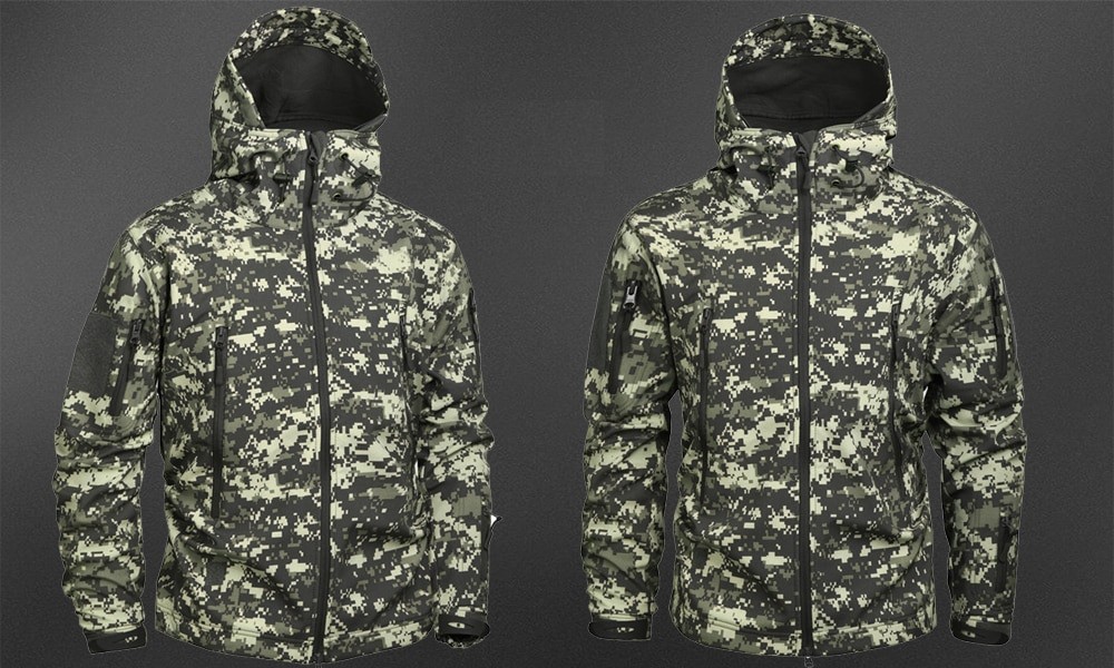 A beautiful jacket in army camouflage style will suit every man.