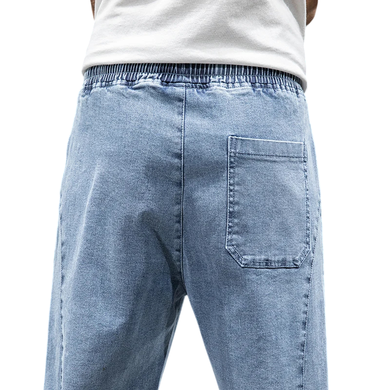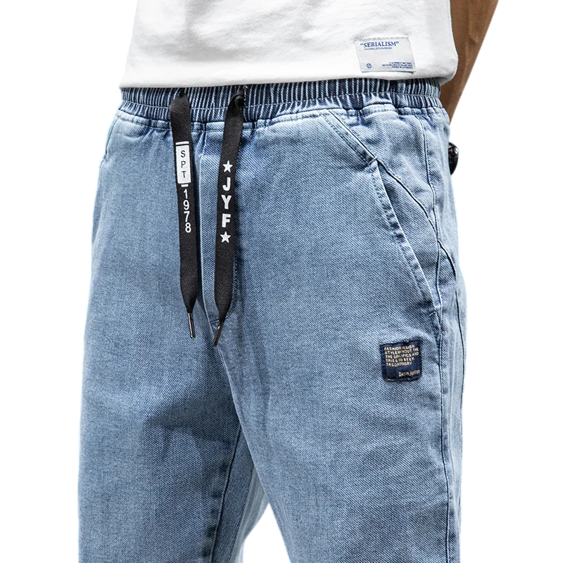 Men's Baggy Cargo Jeans Streetwear Style Elastic Waist with Drawstrings Multiple Pockets Loose Trousers Elastic Cuffs