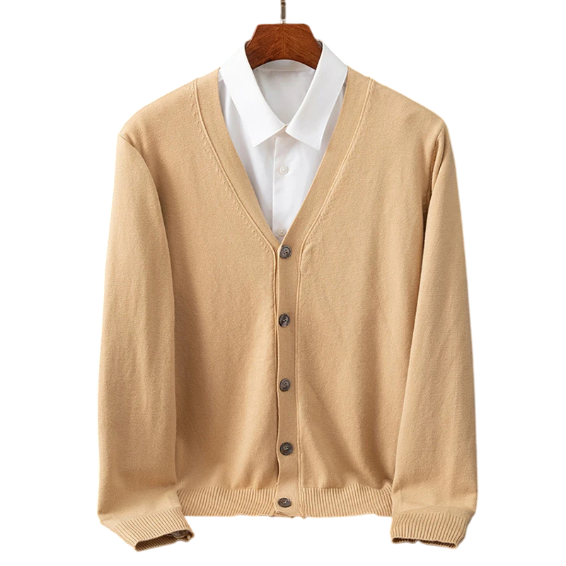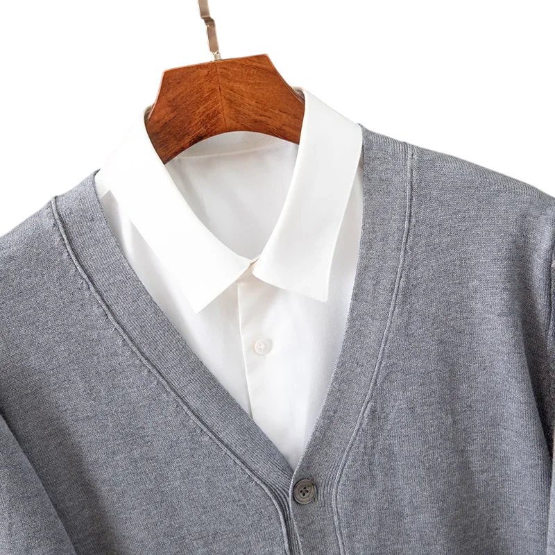 This men's cardigan is the ideal choice for men who want to combine elegant appearance, comfort, and practicality. Thanks to its quality composition of nylon and polyester, it is durable, pleasant to the touch, and retains its shape even with frequent wear. The V-neck and button-up design give it a classic look that is suitable for both formal occasions and casual activities.