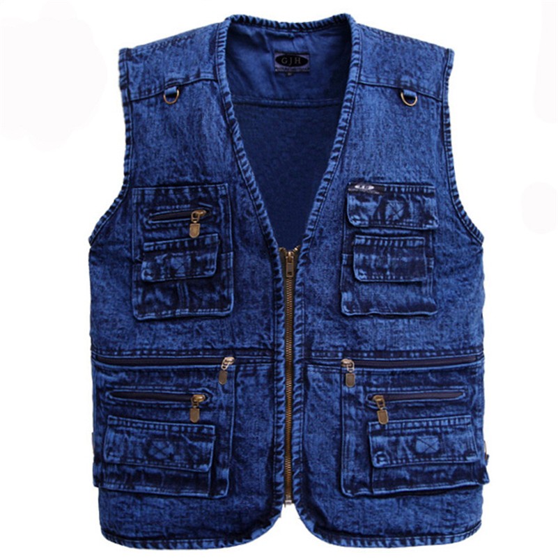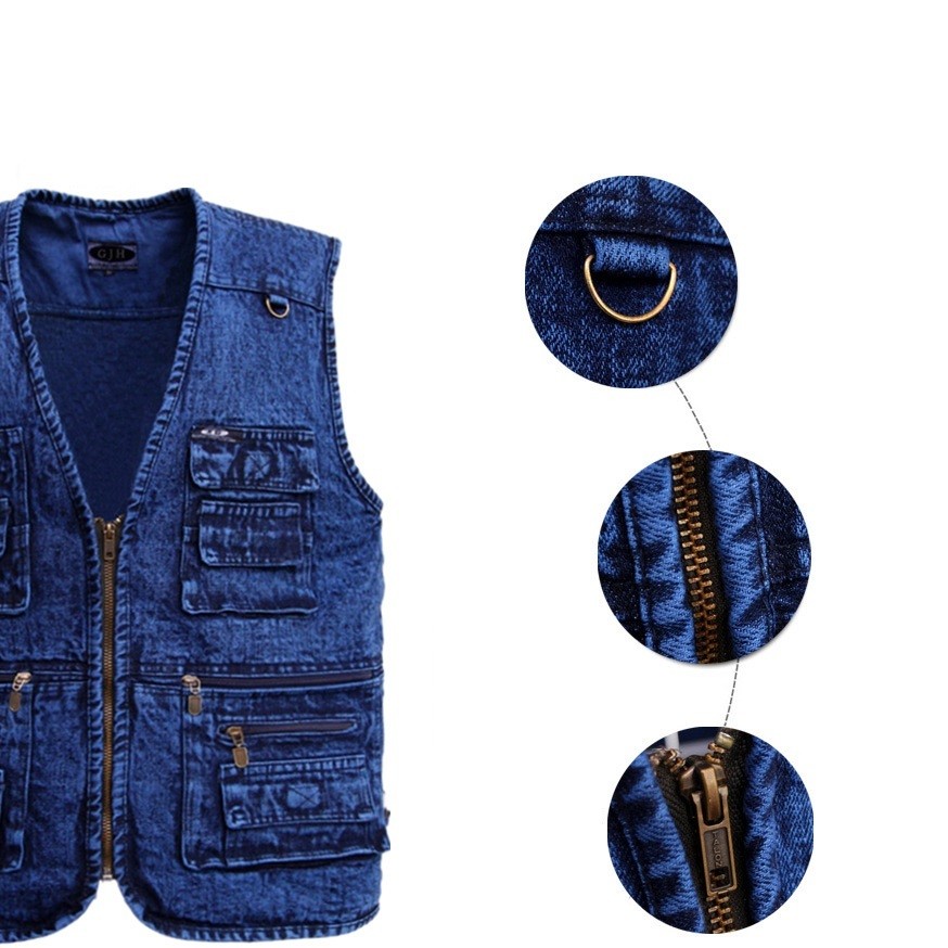 With this denim gilet featuring plenty of pockets, you will attract attention wherever you go.