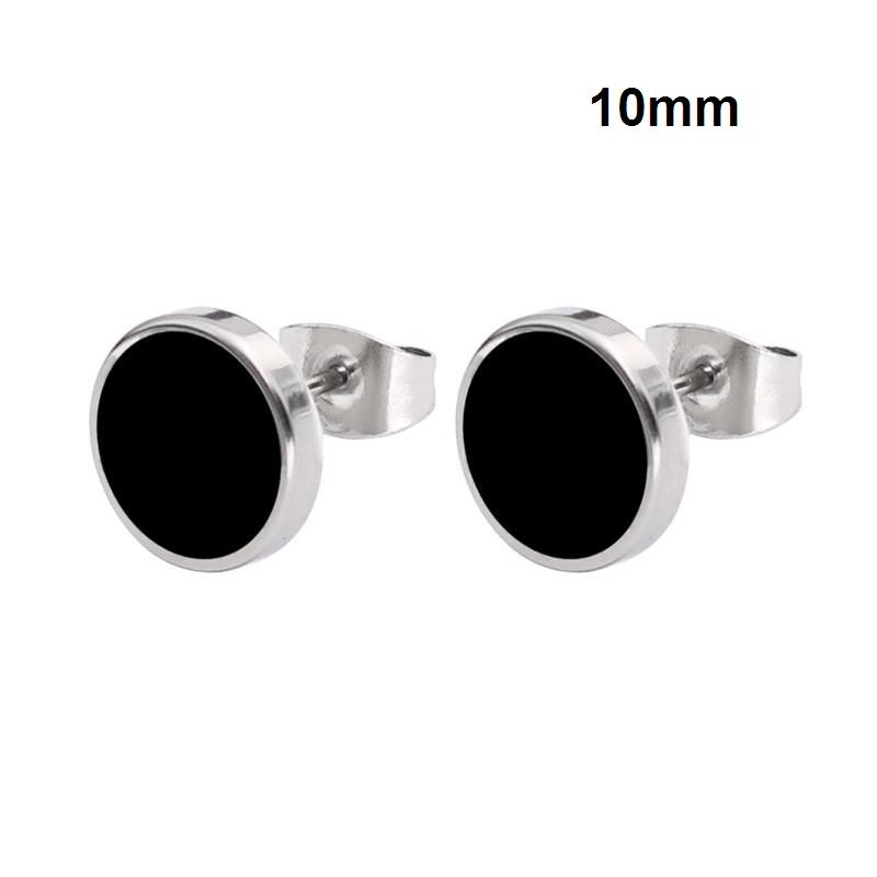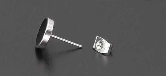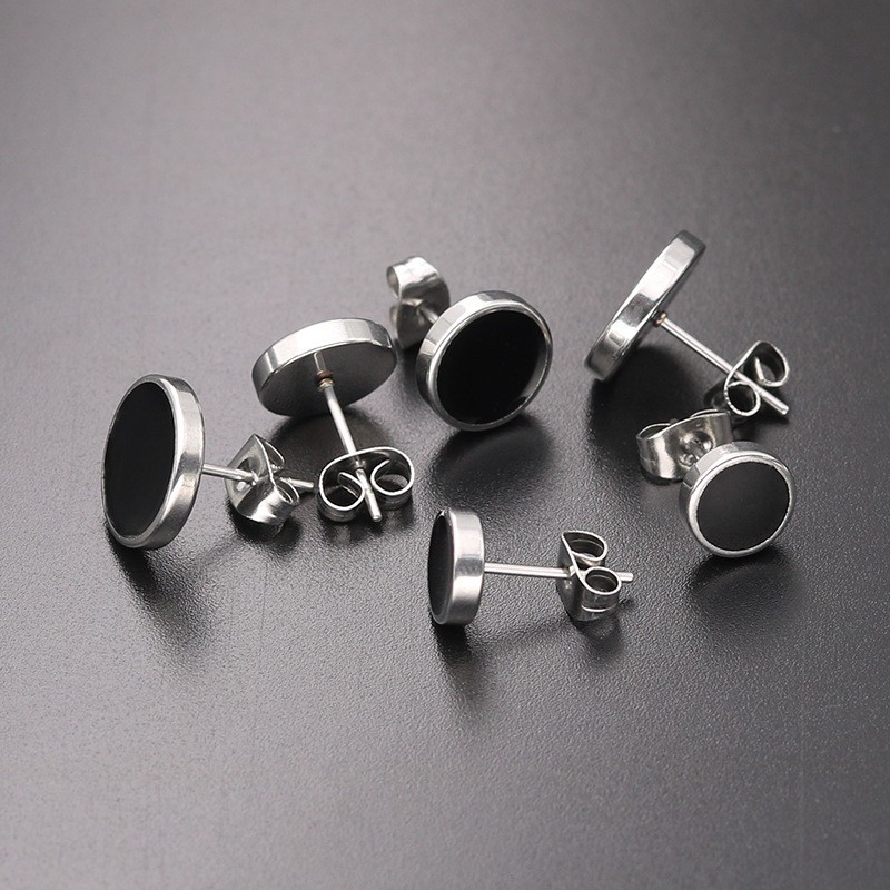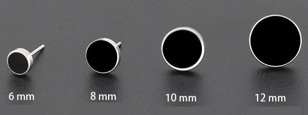 Men's round earrings with a black centre will adorn the ear of any man.