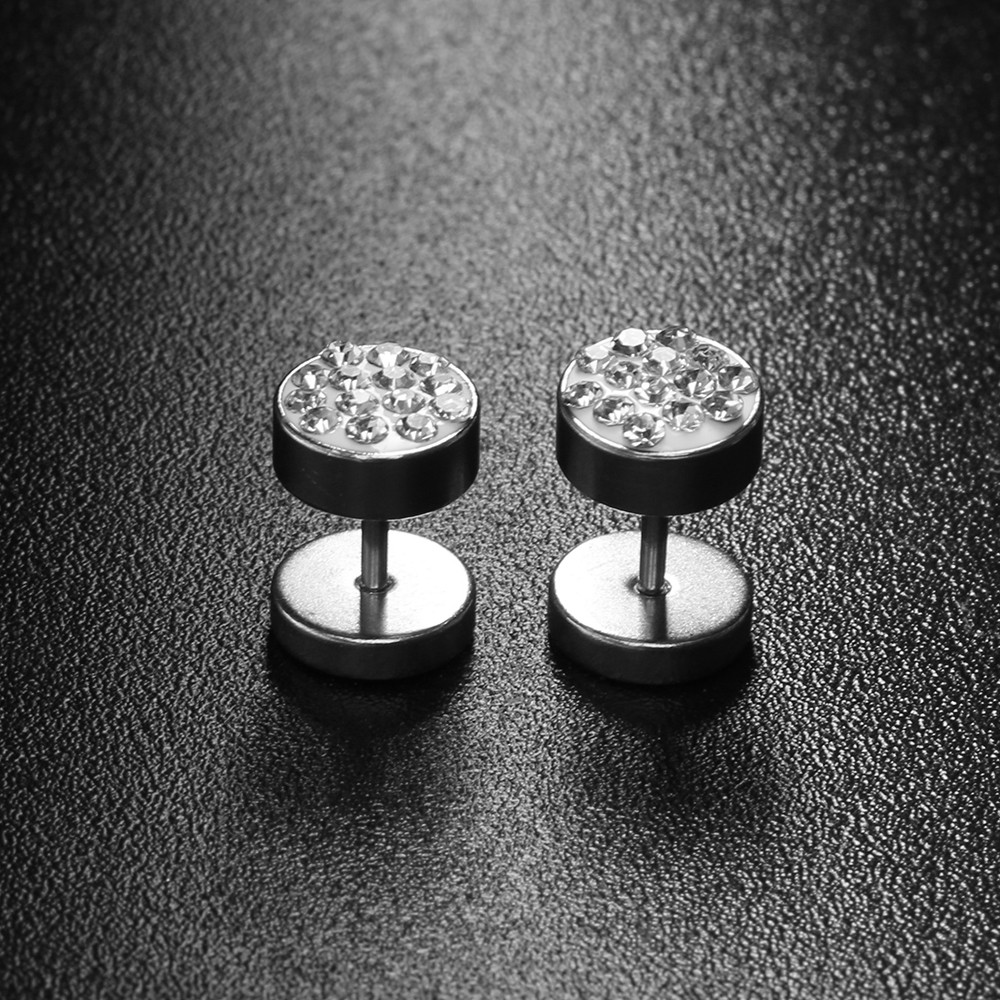 Men's Earrings - Dumbbell with Stones J1490