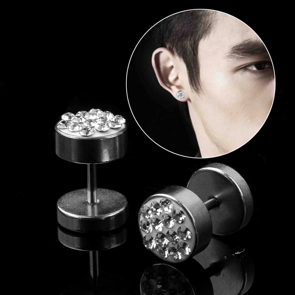 Don't know what gift to get for a young man? These elegant men's earrings in the shape of a dumbbell with gemstones are the perfect gift.
