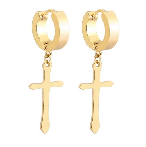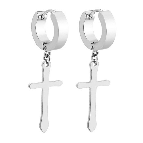 Men's Earrings - Hoops with Cross J2159