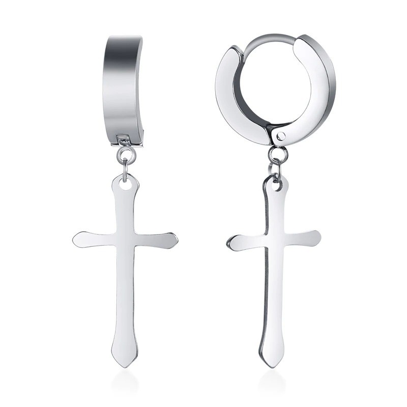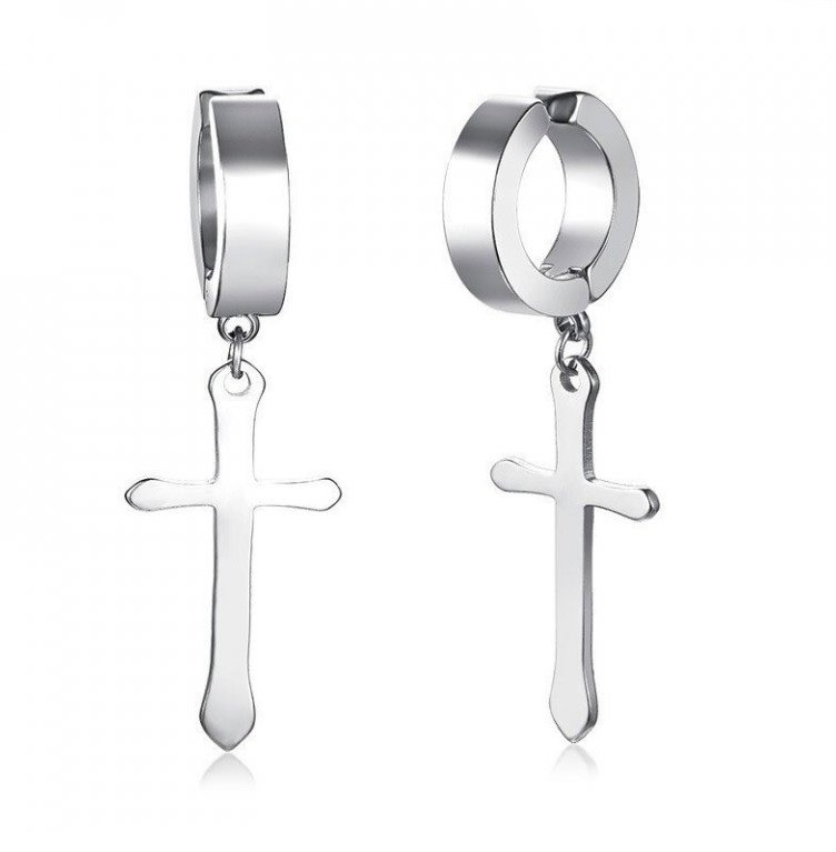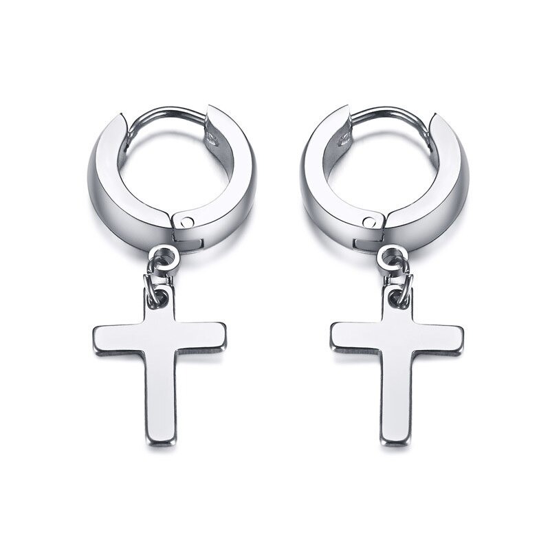 Men's Hoop Earrings with Cross