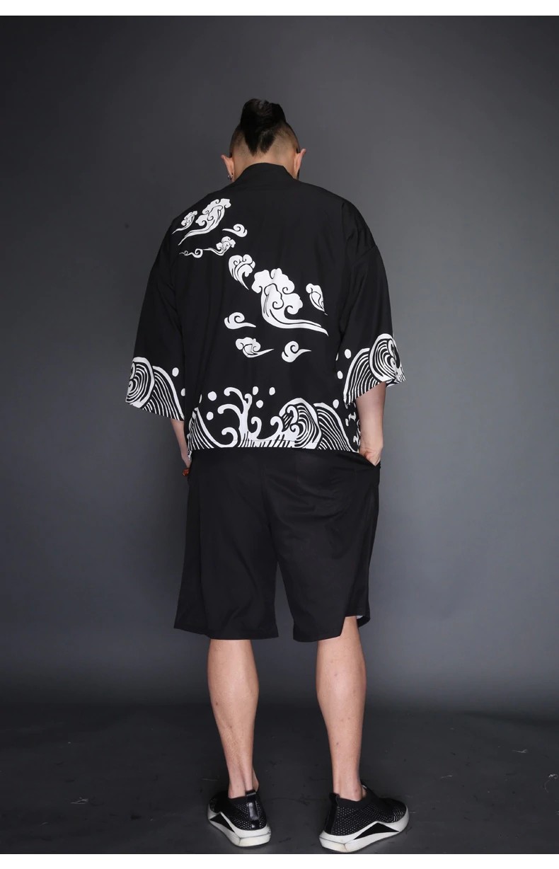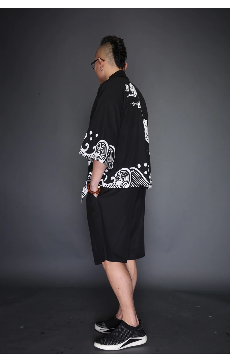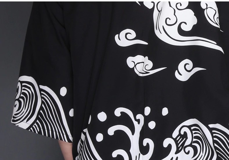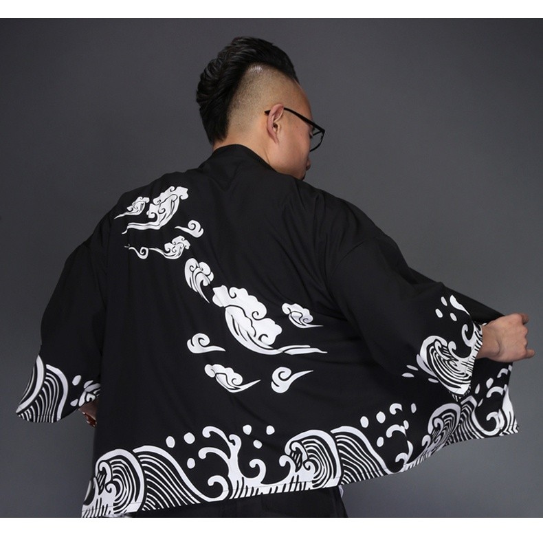 Men's Japanese Jacket with Print - Black