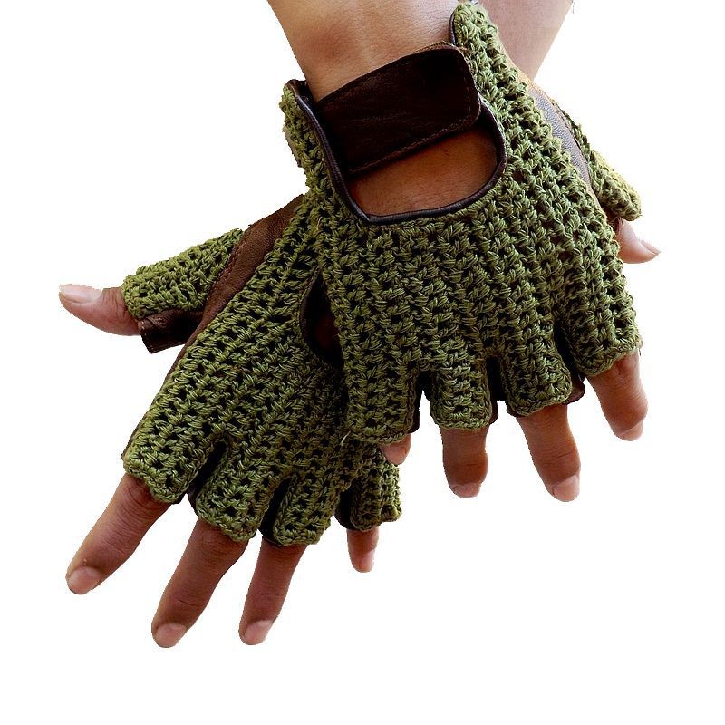 Men's fingerless gloves in an unconventional design.