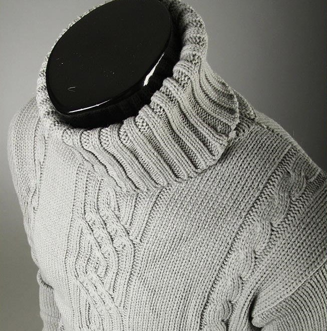 Men's knitted sweater in perfect workmanship catches the eye at first glance.