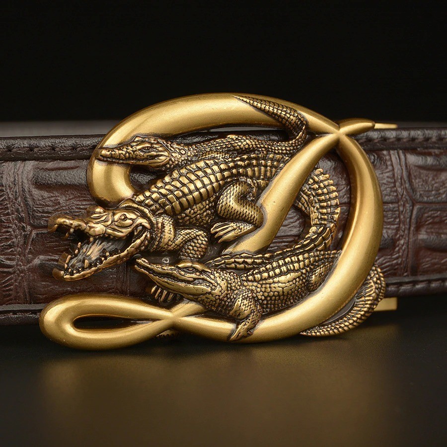 Men's Leather Belt with Crocodiles
