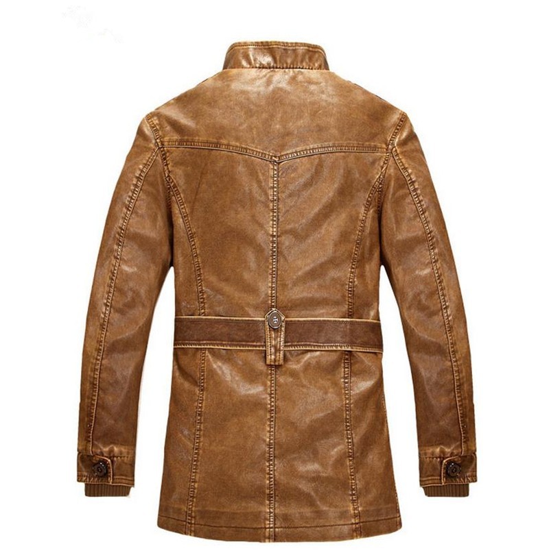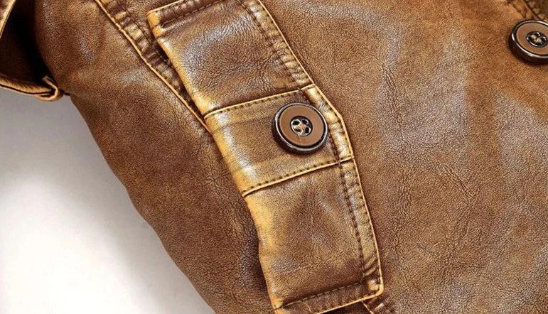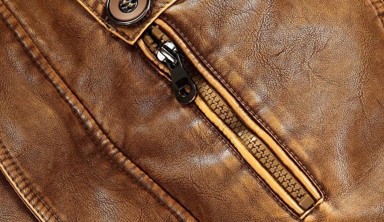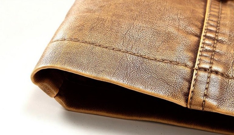A beautiful jacket made of artificial leather will suit every man.