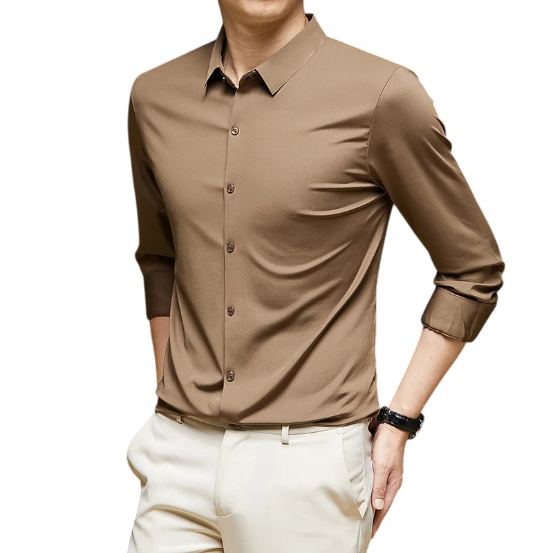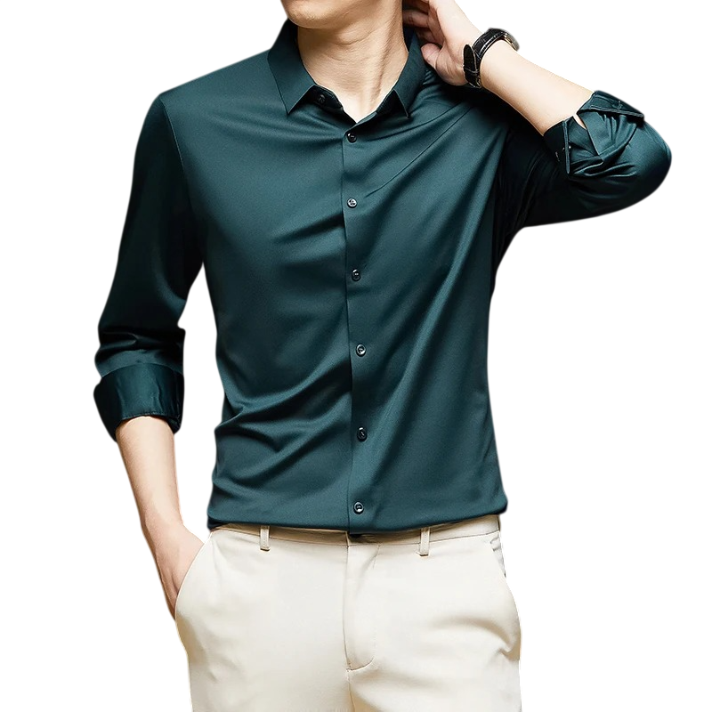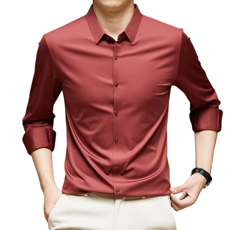 The shirt is an ideal choice for men who prefer a simple style without unnecessary details. Thanks to the stretchy material, it adapts well to the body and does not restrict movement, which you will appreciate during all-day wear. The plain design ensures wide compatibility with trousers, jeans, and blazers. The long sleeves add versatility and usability in various seasons. This piece can easily become a staple in your wardrobe for a comfortable and polished everyday look.