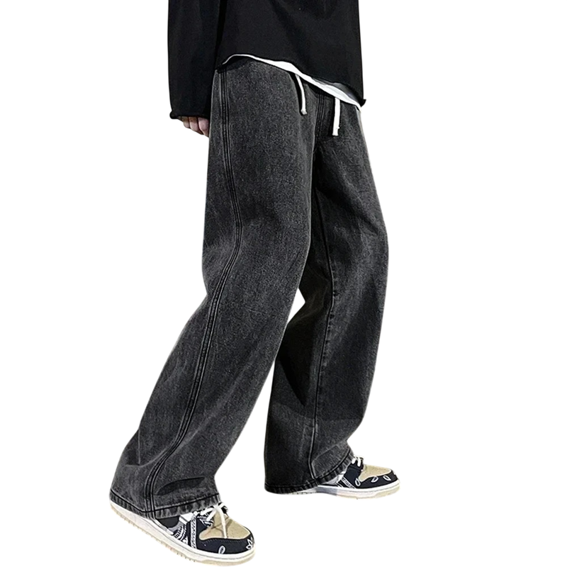 Stylish loose men's jeans with pockets and a drawstring, made from cotton and polyester. A comfortable and modern piece for everyday wear. Full description