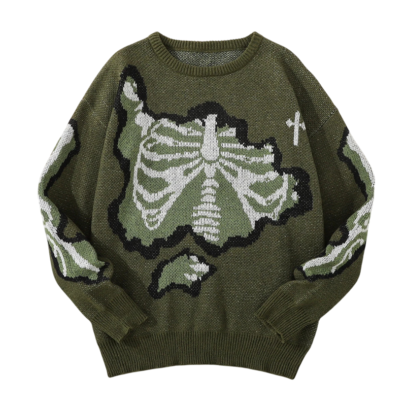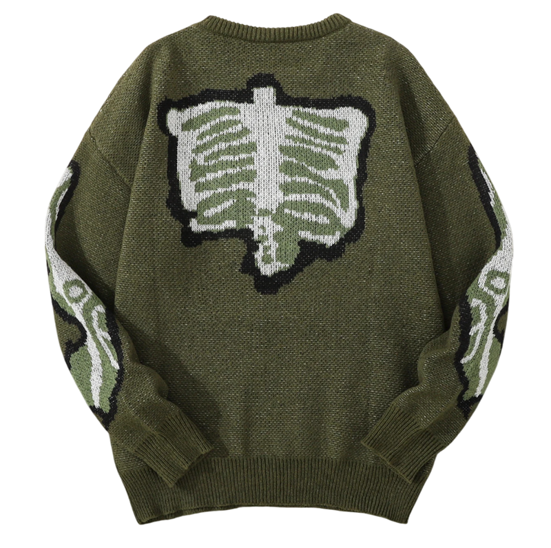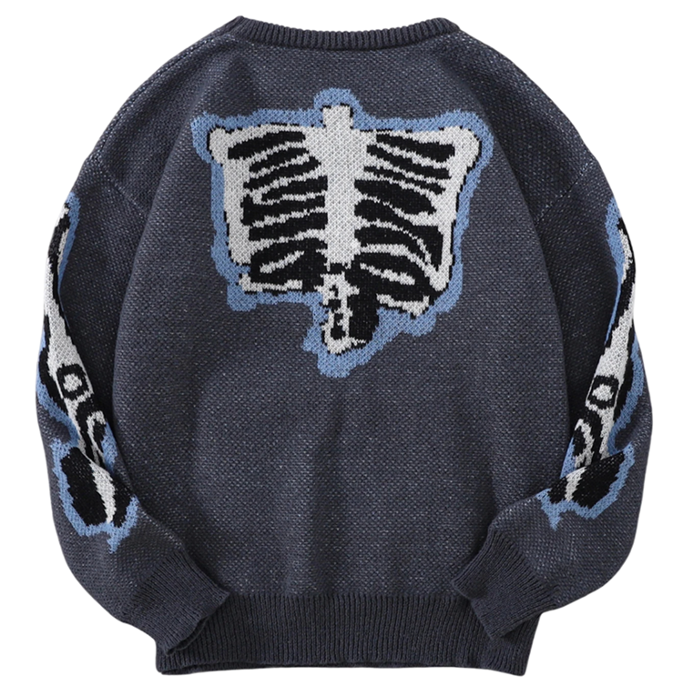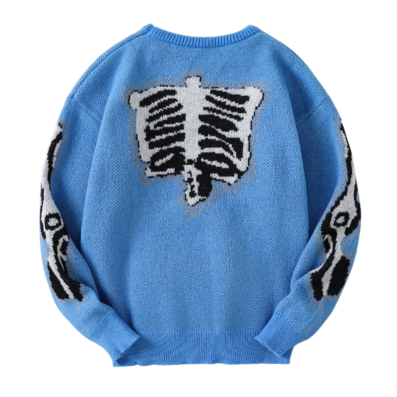 The sweater is designed to provide comfort on cooler days. Long sleeves and soft knit ensure a pleasant feeling when worn and sufficient warmth during autumn and winter. Thanks to its unique skeleton motif, the sweater is suitable not only for casual outfits but also as a striking piece for themed events or parties. It is available in several colour variants, allowing everyone to choose a model according to their taste.