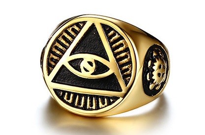 This ring is adorned with the symbol of the Eye of God in a triangle that is embellished with rays.