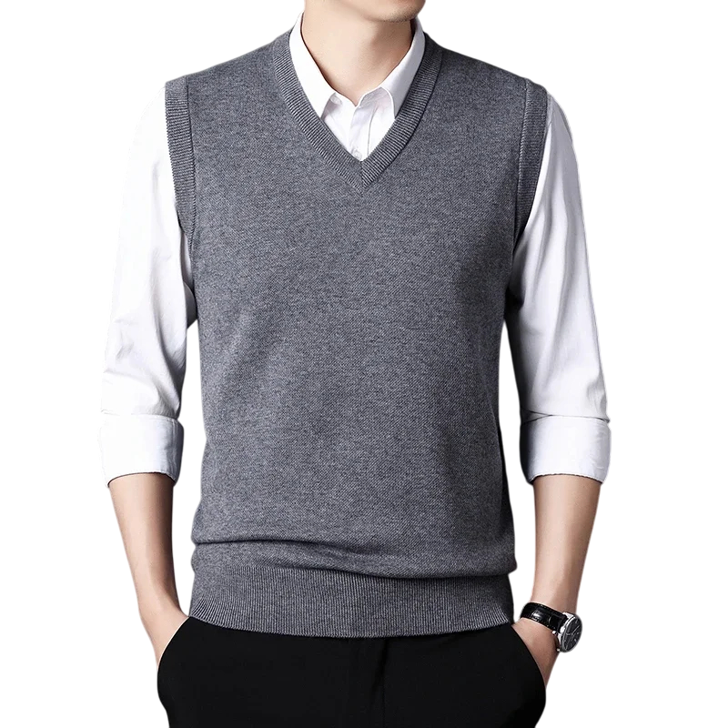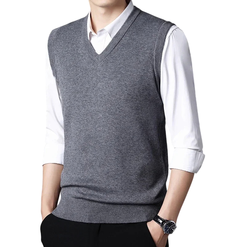 Men's Sleeveless Sweater Vest Cotton and Wool Plain Vest with V-Neck Elegant Modern Men's Vest Multiple Colours
