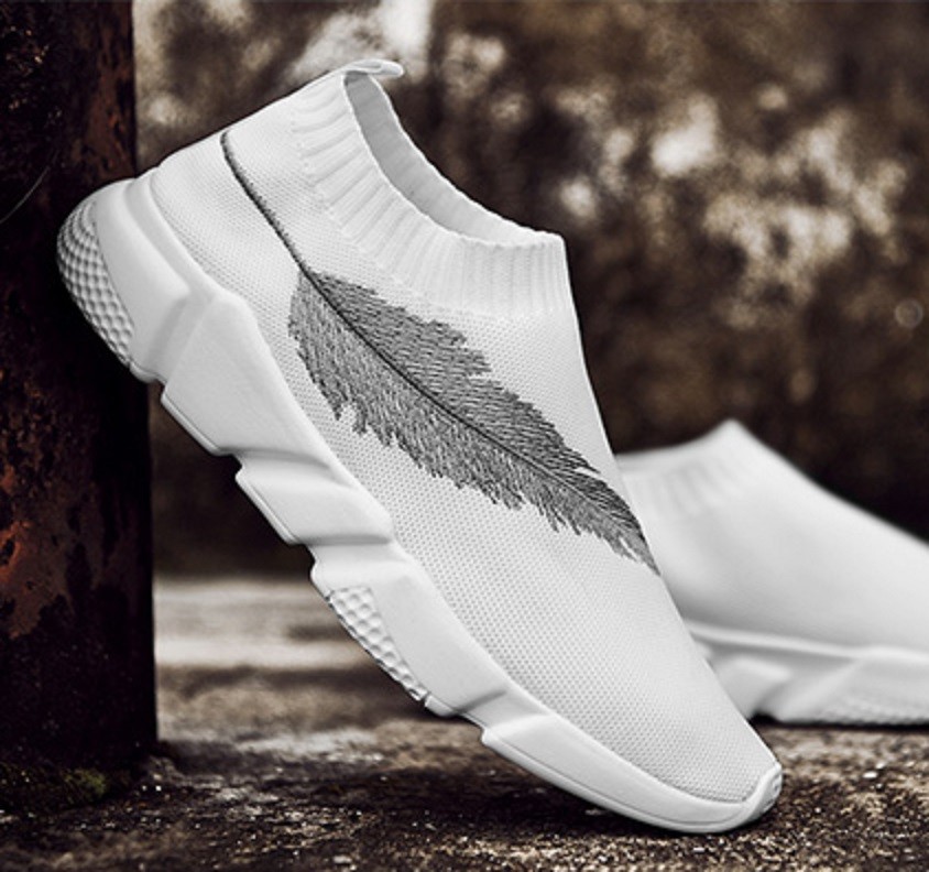 Men's slip-on sneakers with a feather, which are very comfortable and breathable.
