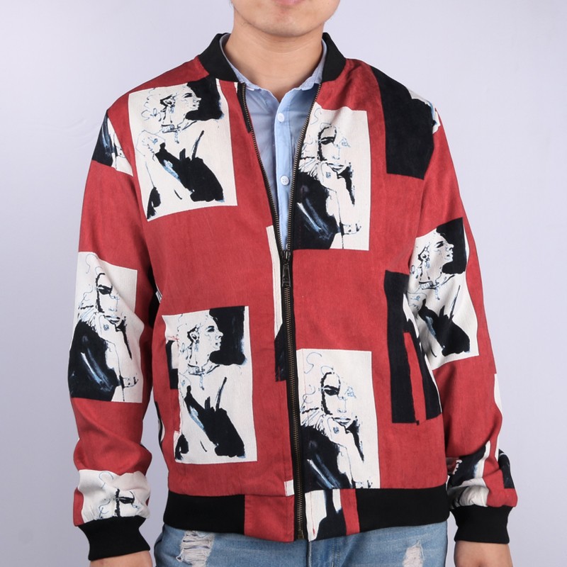 Men's Spring Jacket with Portraits of a Woman - Red