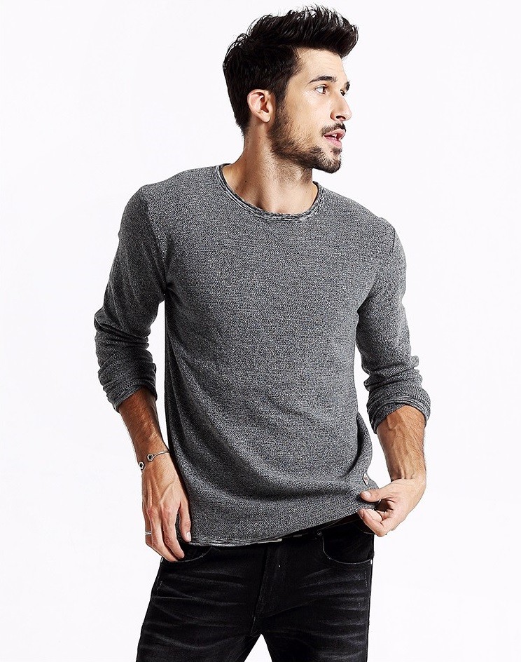 The men's long sleeve t-shirt in grey is a great choice for any weather.