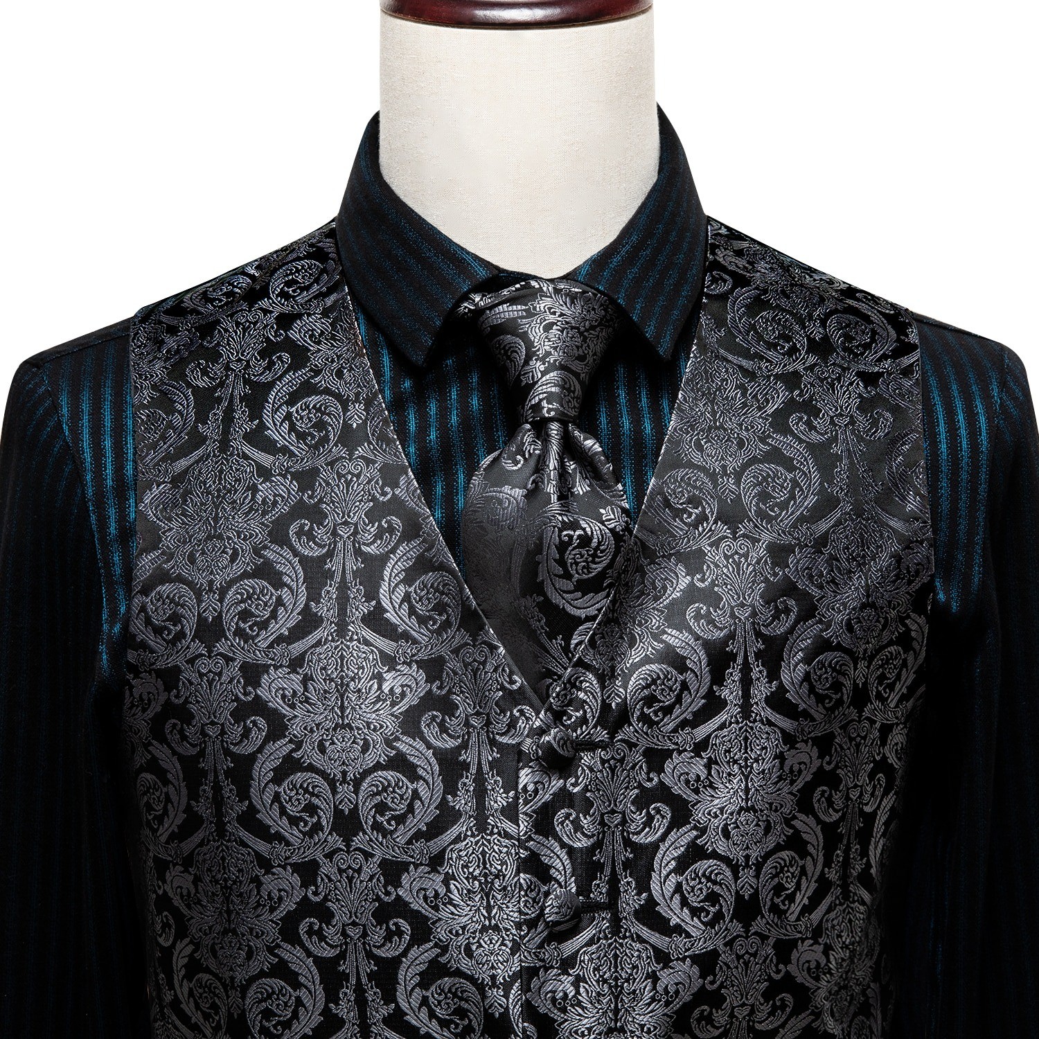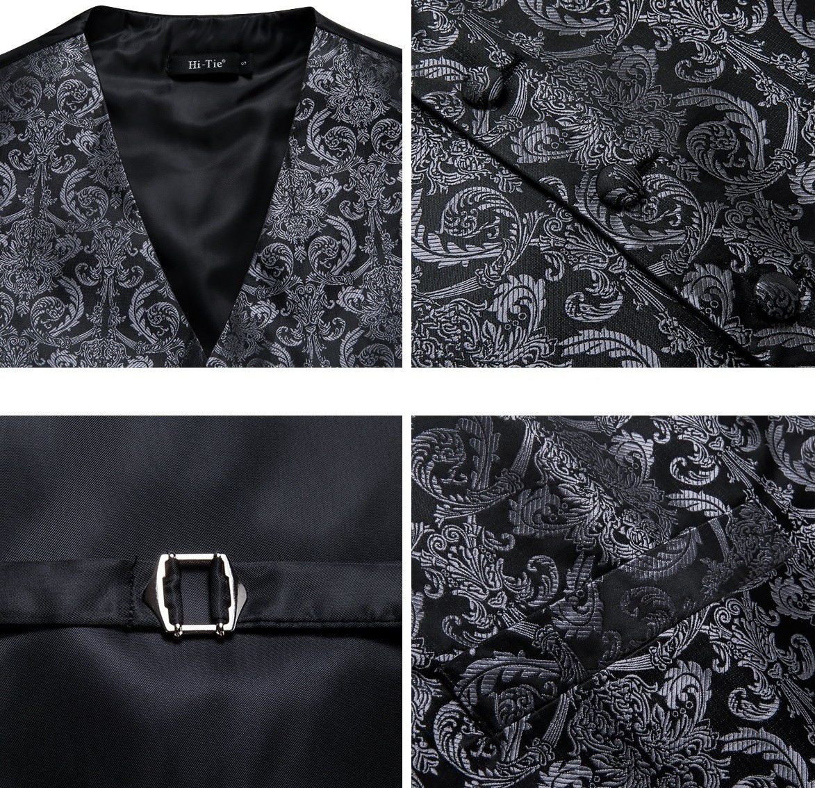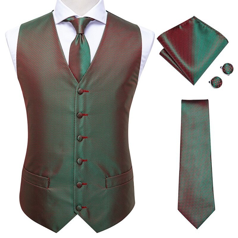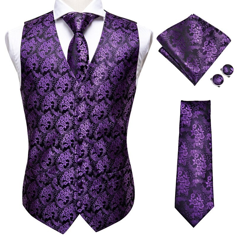 Contents: 1x waistcoat, 1x tie, 1x pocket square, 2x cufflinks