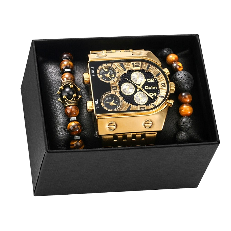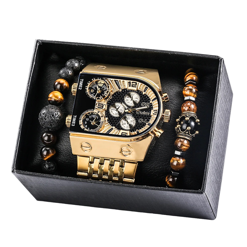 This elegant set is ideal for the modern man. It is made from high-quality materials and includes one watch and two bracelets. The watch is perfect for any occasion. This set will become a favourite accessory in your wardrobe!