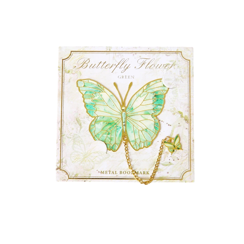 A decorative metal bookmark with a butterfly on a chain serves to mark your page while also acting as an elegant ornament for your book. Full description