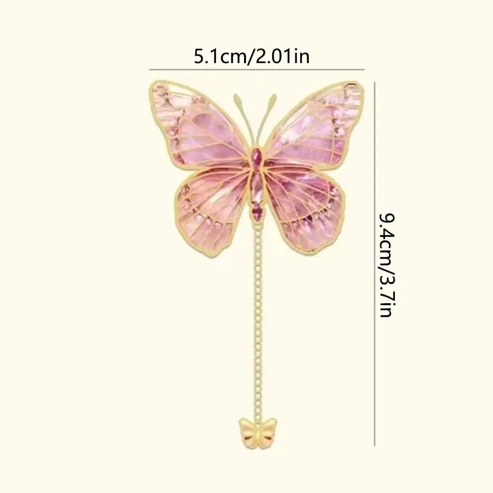 The bookmark's dimensions of 9.4 x 5.1 cm provide ample surface area for comfortable use without the bookmark protruding excessively or weighing down the pages. The metal construction ensures durability and longevity with regular use. The butterfly motif adds a gentle aesthetic character to the bookmark, making it not only a useful accessory but also a decorative element. The bookmark is easy to insert and remove and holds securely in place.
