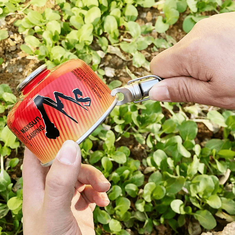 This clamp is compatible with most standard gas cartridges, and its design ensures a firm grip without slipping. Easy handling without the need for tools, compact size, and easy portability make it an ideal companion for outdoor enthusiasts.